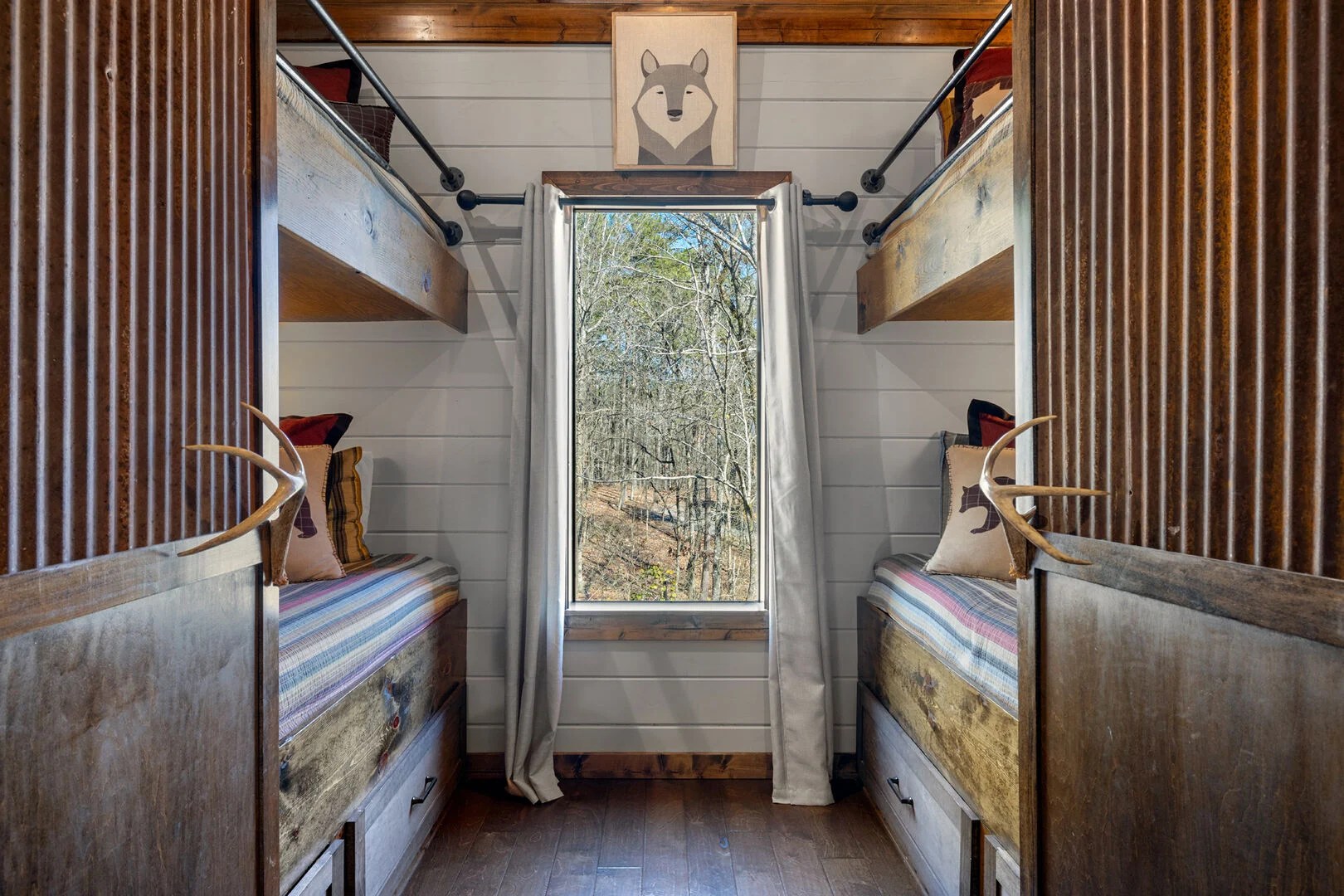 Separate bunk room with 4 built-in XL twin beds